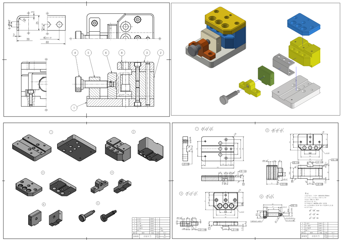 2. 3D형상모델링 검토(조립도, 2D도면작성, 표면거칠기, 치수공차, 기하공차기입법, 주서작성법, 도면출력)
