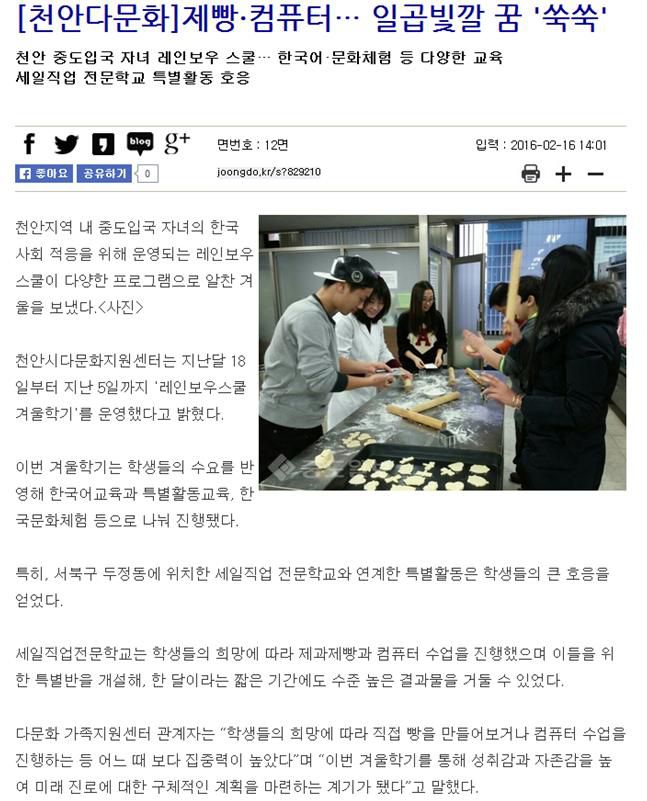 천안시 다문화 센터와 함께 진행한 레인보우스쿨이 진행되었습니다.